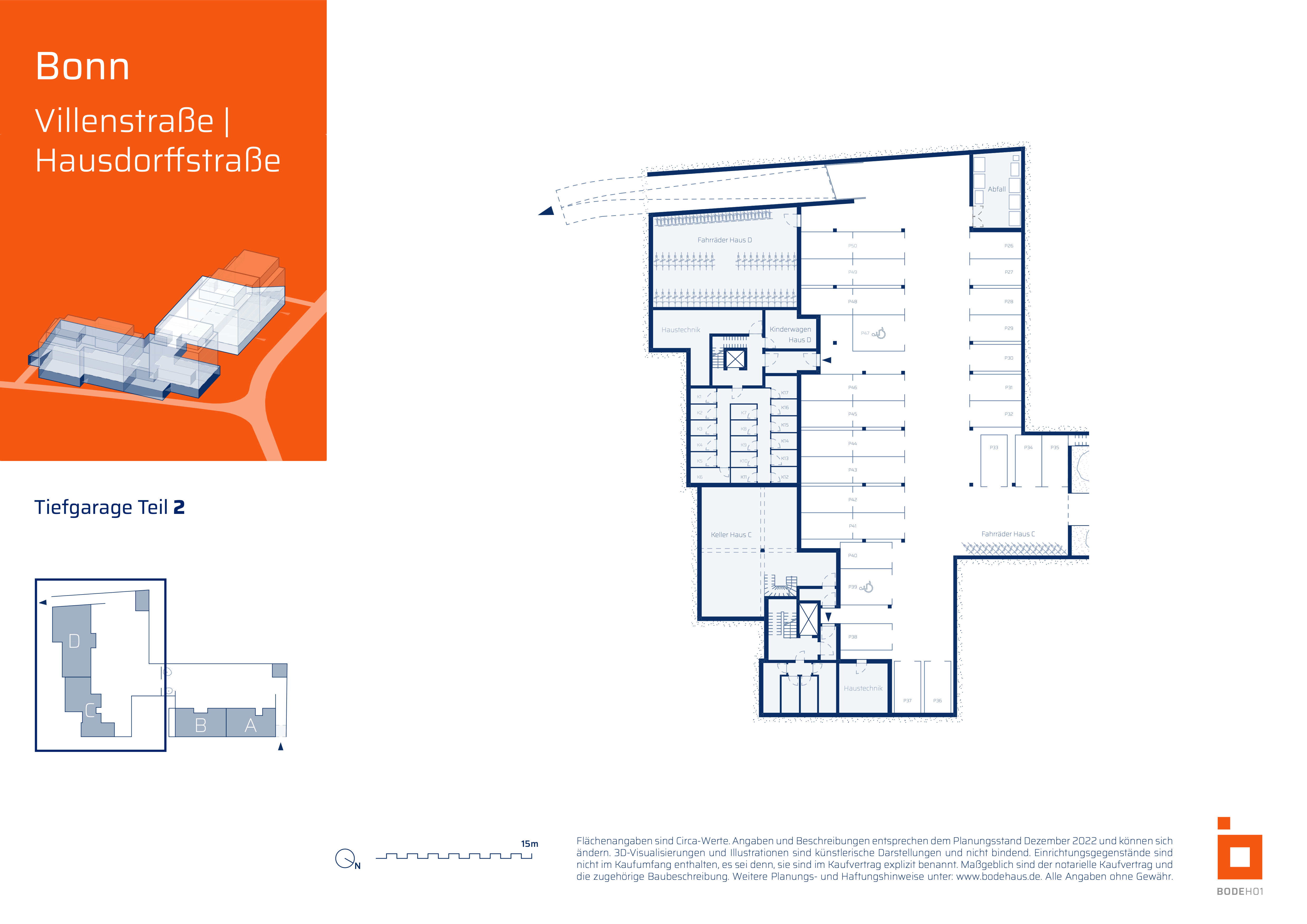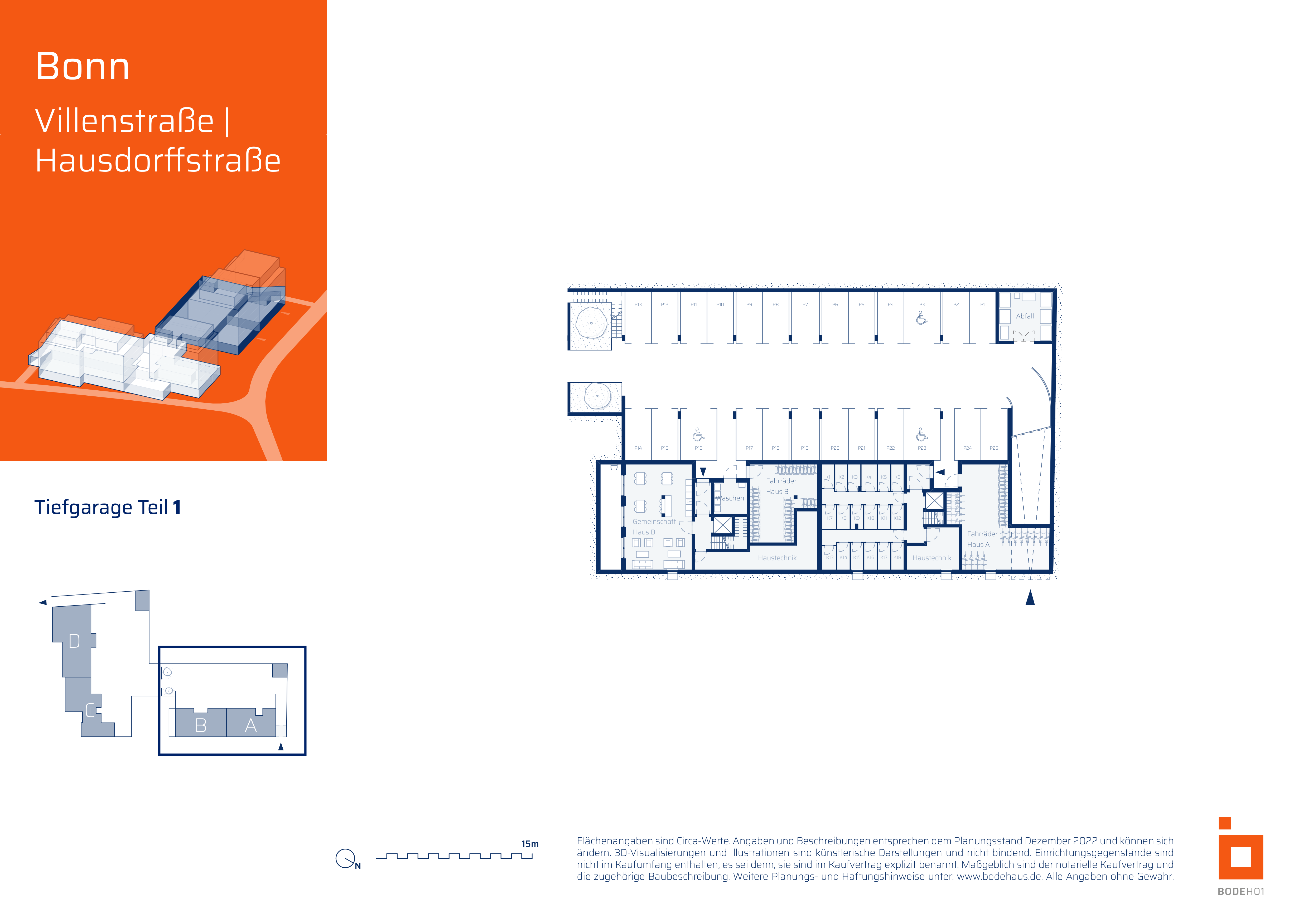Die Tiefgarage wird über 50 PKW Stellplätze verfügen. Von der Tiefgarage sind barrierefreie Zugänge zu den 4 Häusern gewährleistet.