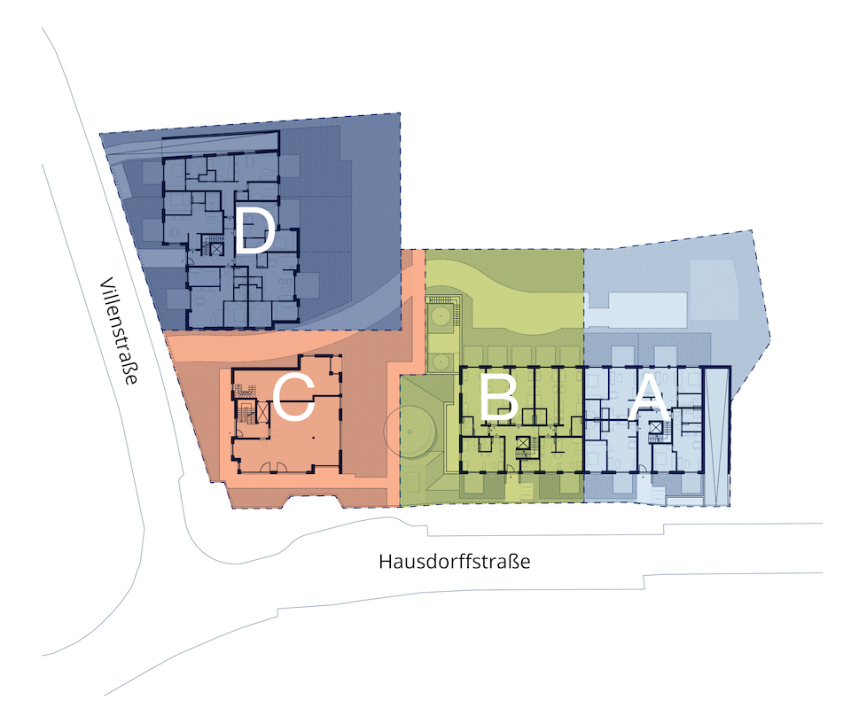 In diesem Neubauprojekt in Bonn Dottendorf entsteht entlang der Villenstraße und der Hausdorffstraße am Fuß des Venusberges Wohn- und Gewerberaum.